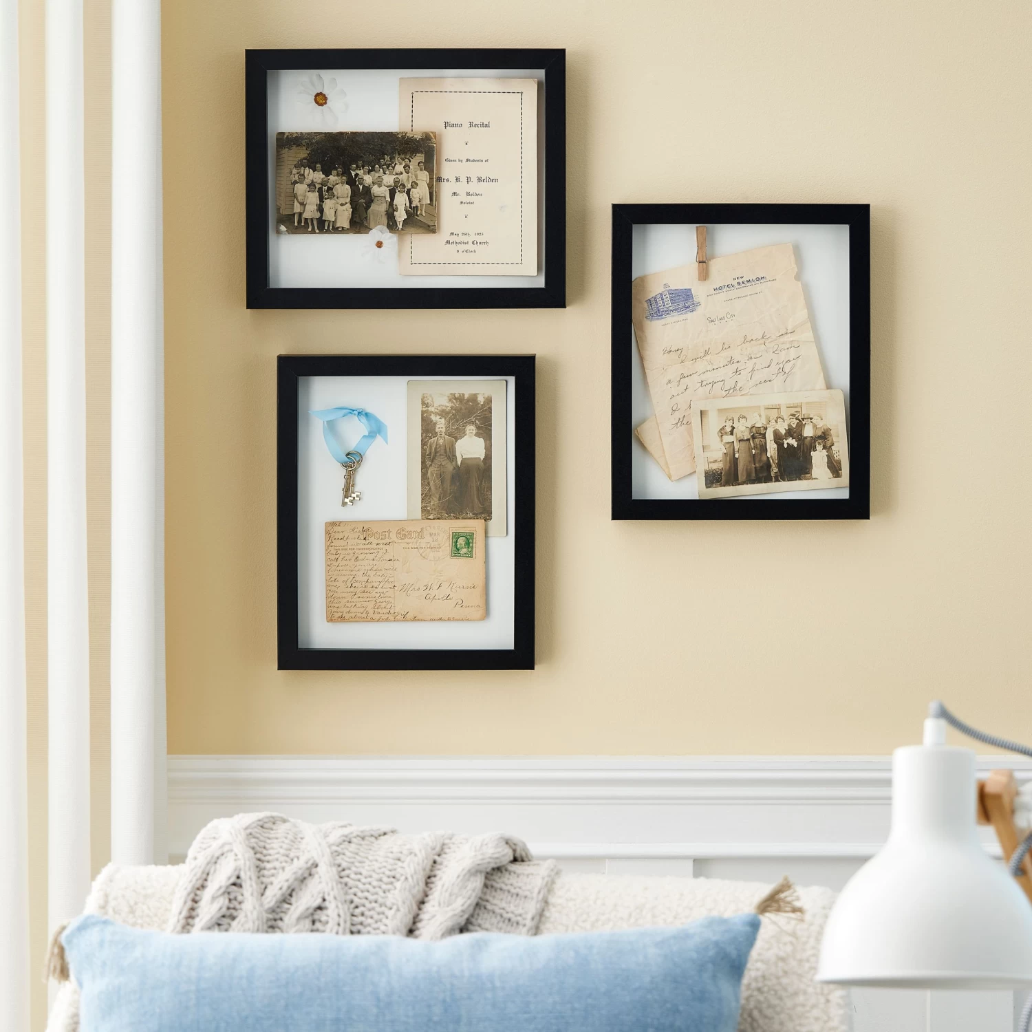 Give your wall hanging décor a personalized touch with these black shadow boxes. Each 8″ x 10″ shadow box is constructed of a durable glass front with a natural backboard and sawtooth hanger for easy installation. Arrange your postcards, souvenirs and memorabilia inside for a creative display.