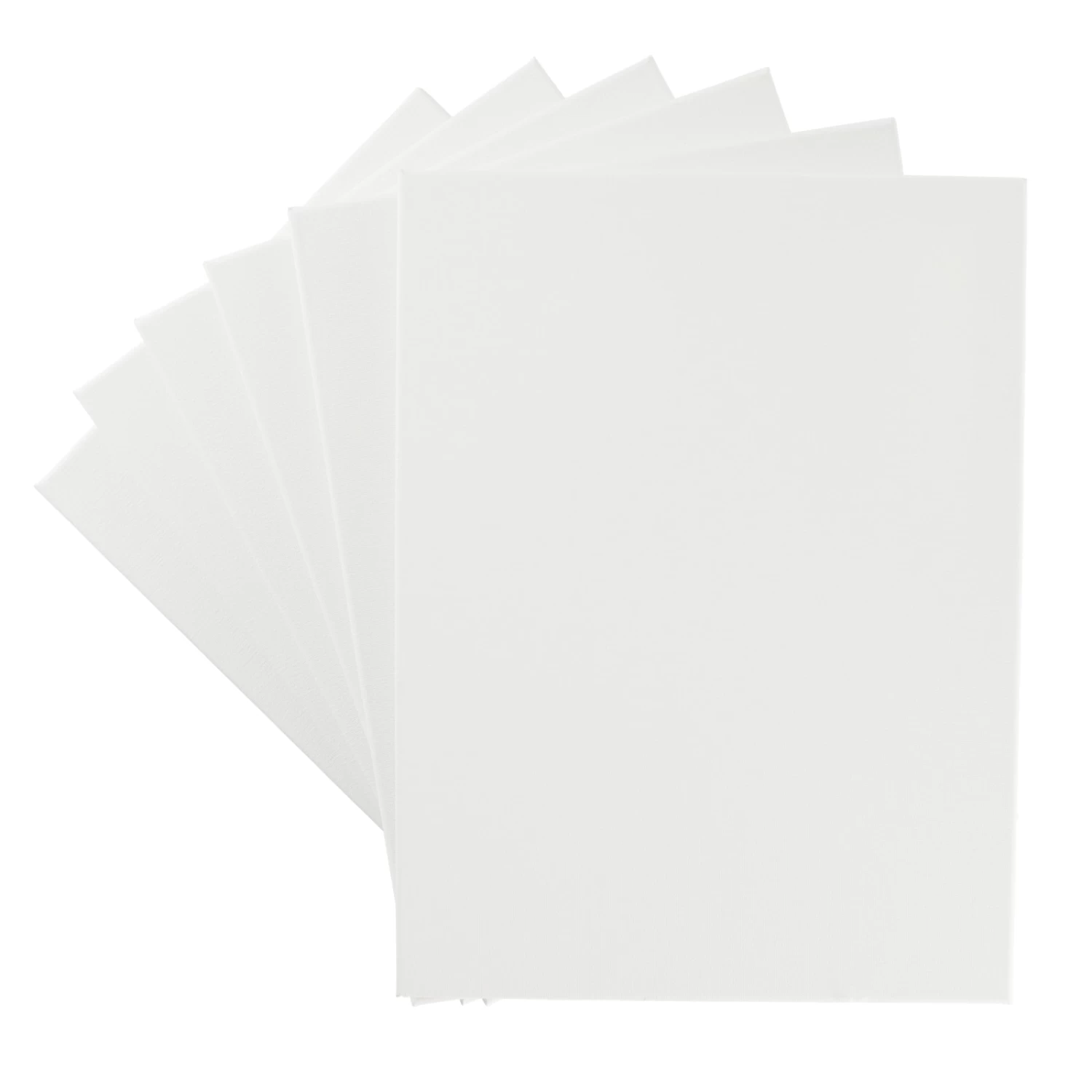 Perfect for students or working artists, this canvas set provides great quality at a great value. Each 100% cotton duck canvas is acrylic titanium triple primed with acid-free sizing. Ideal for acrylic or oil painting, each canvas is stretched and back stapled to a 5/8″ (1.58 cm) kiln-dried wooden frame.