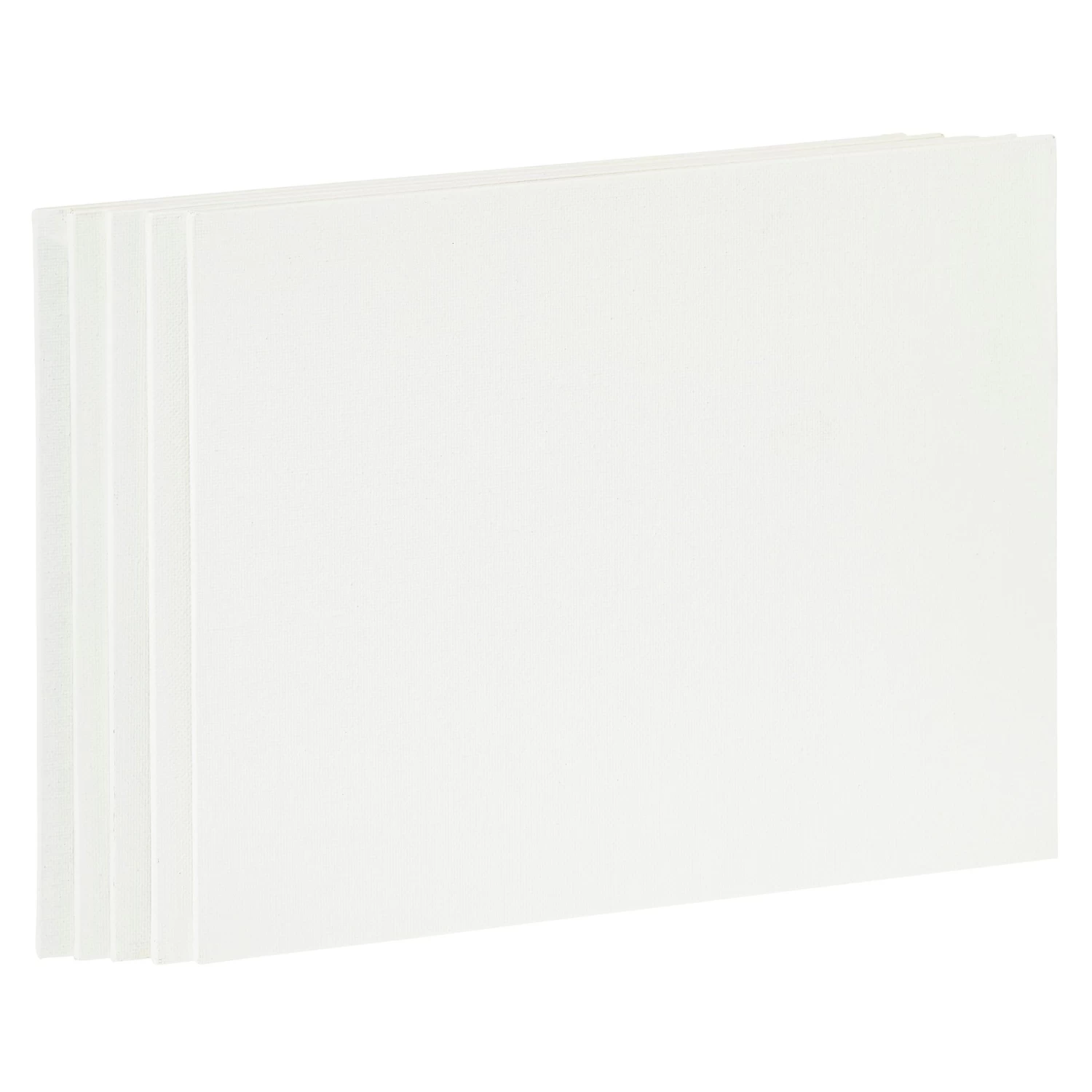 Perfect for students or working artists, this set of canvas panels provides great quality at a great value. Each 100% cotton, medium-weight canvas is primed with acid-free white acrylic gesso, wraps around all sides, and is secured in place on the backside of the panel board.