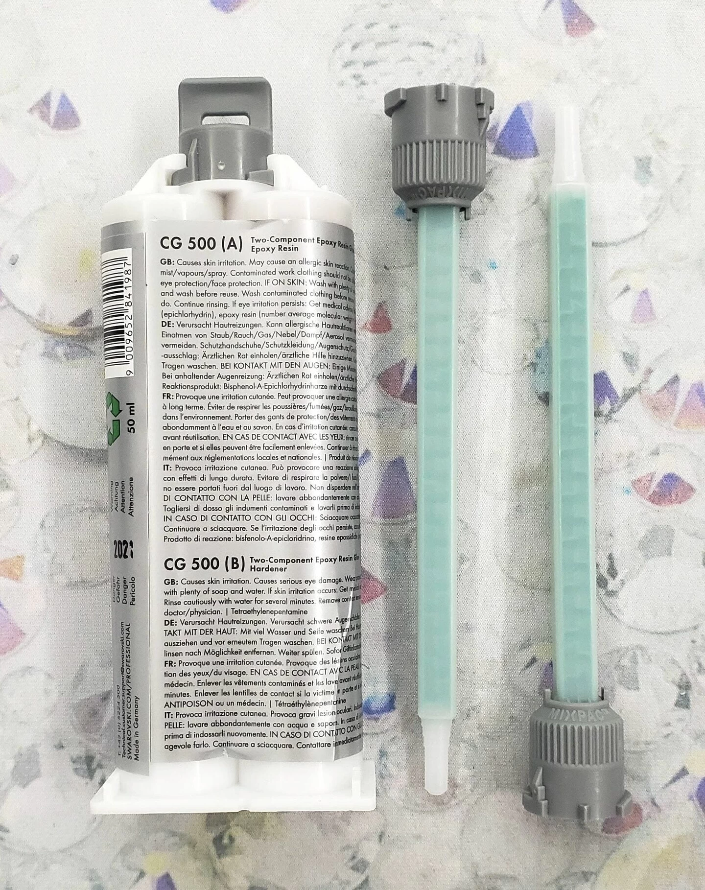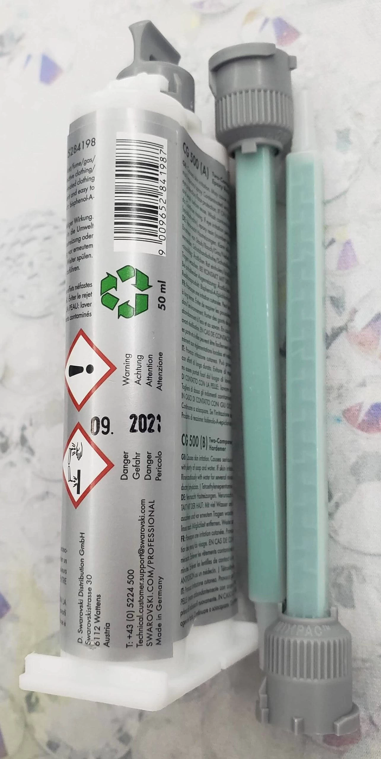 “leading crystal manufacturer” CG 500 glue is a very flexible and extremely strong two-component Epoxy Resin adhesive, which has been specially developed for gluing “leading crystal manufacturer” Crystals. It has optimal adhesive characteristics for g