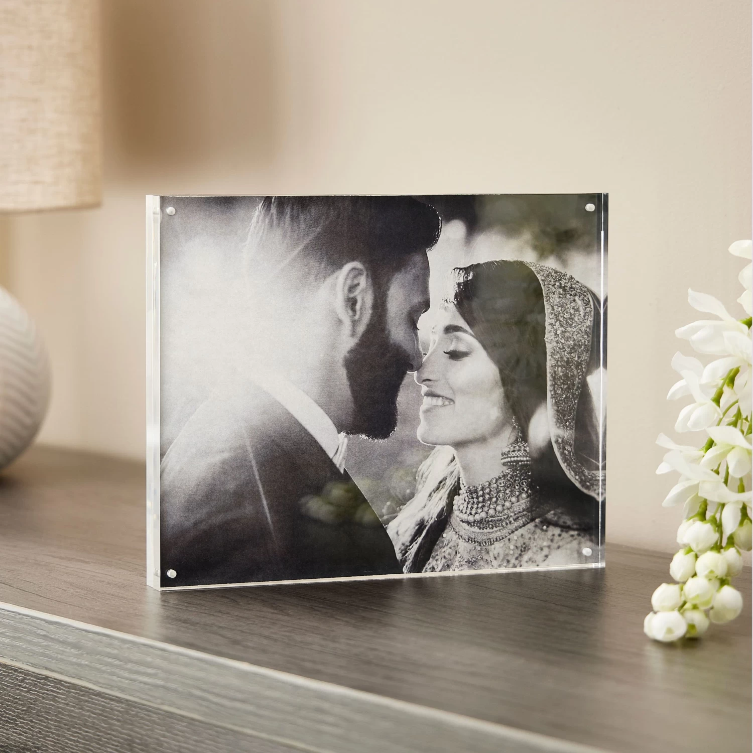 This beautiful acrylic block frame by Studio Décor adds a floating effect to your photos. You can also use it to encase your ticket stubs, stamps and postcards. Pair it with a souvenir and place it on your mantelpiece to accent your décor.