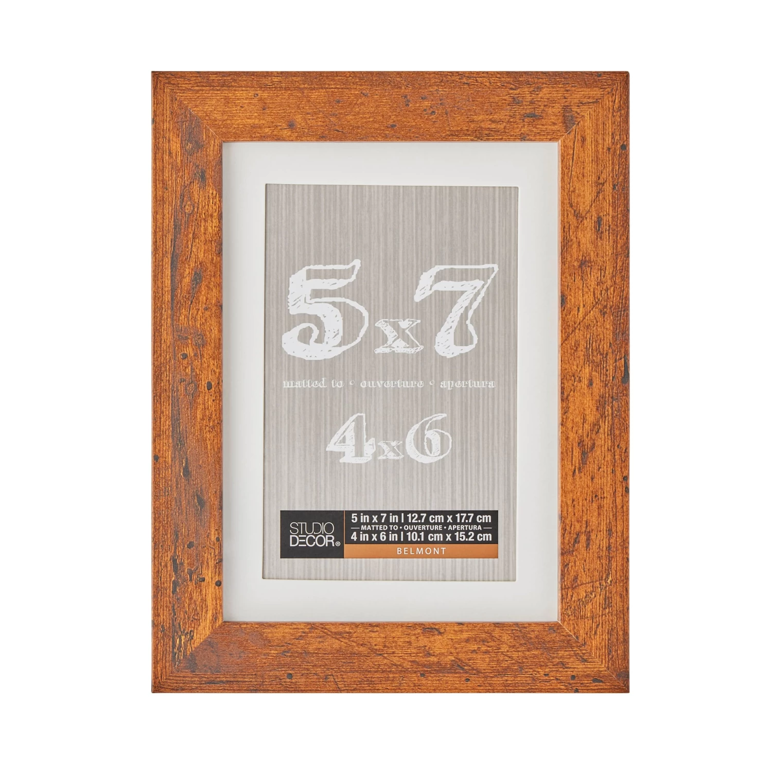 Display your favorite candid picture in this Belmont frame by Studio Décor. It has a thick glass layer to protect your artwork or photographs from dust. With a textured finish, this frame is perfect to add a rustic charm to your focal wall. The durable frame has a contemporary design and looks great in almost any décor. With its white mat, this frame is perfect for displaying a cherished photograph or artwork.