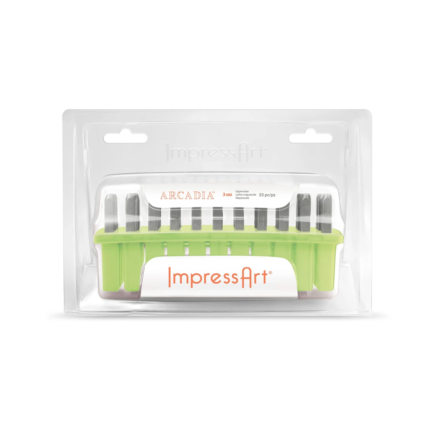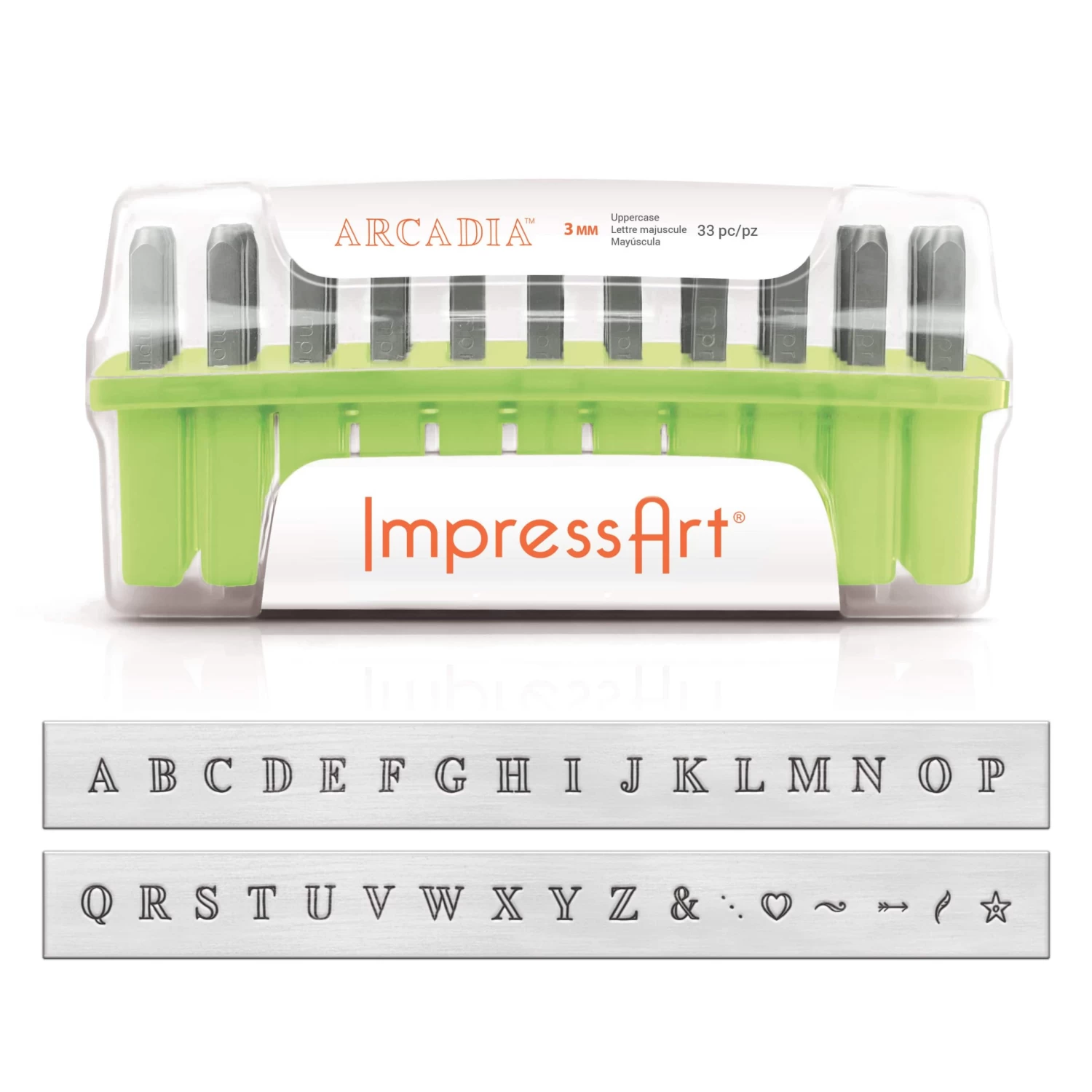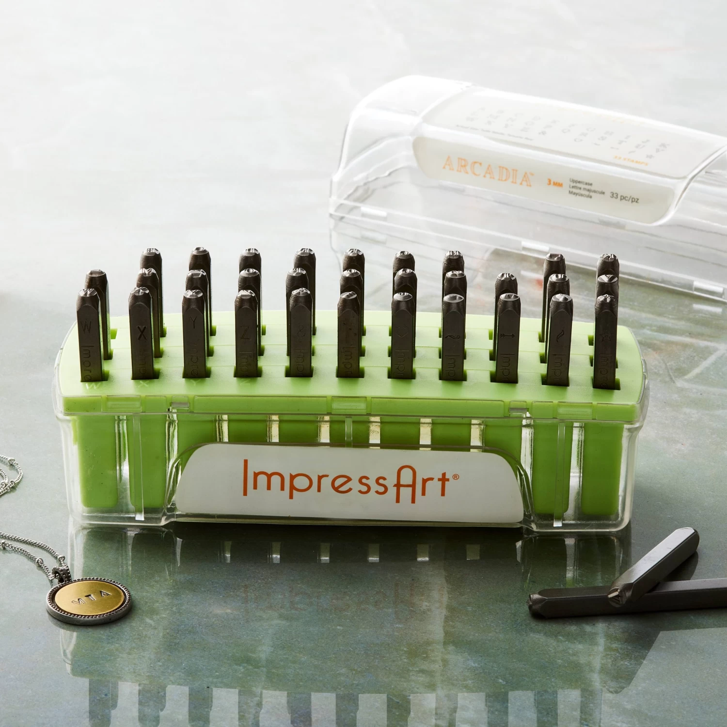 This patented storage case from Impress Art includes letter stamps that are perfect to customize anything from medallion charms and flat keychains to spoons and plaques. You can use these uppercase alphabet stamps to conveniently form words or phrases on soft metals like nickel silver, aluminum, brass, silver, copper and gold.