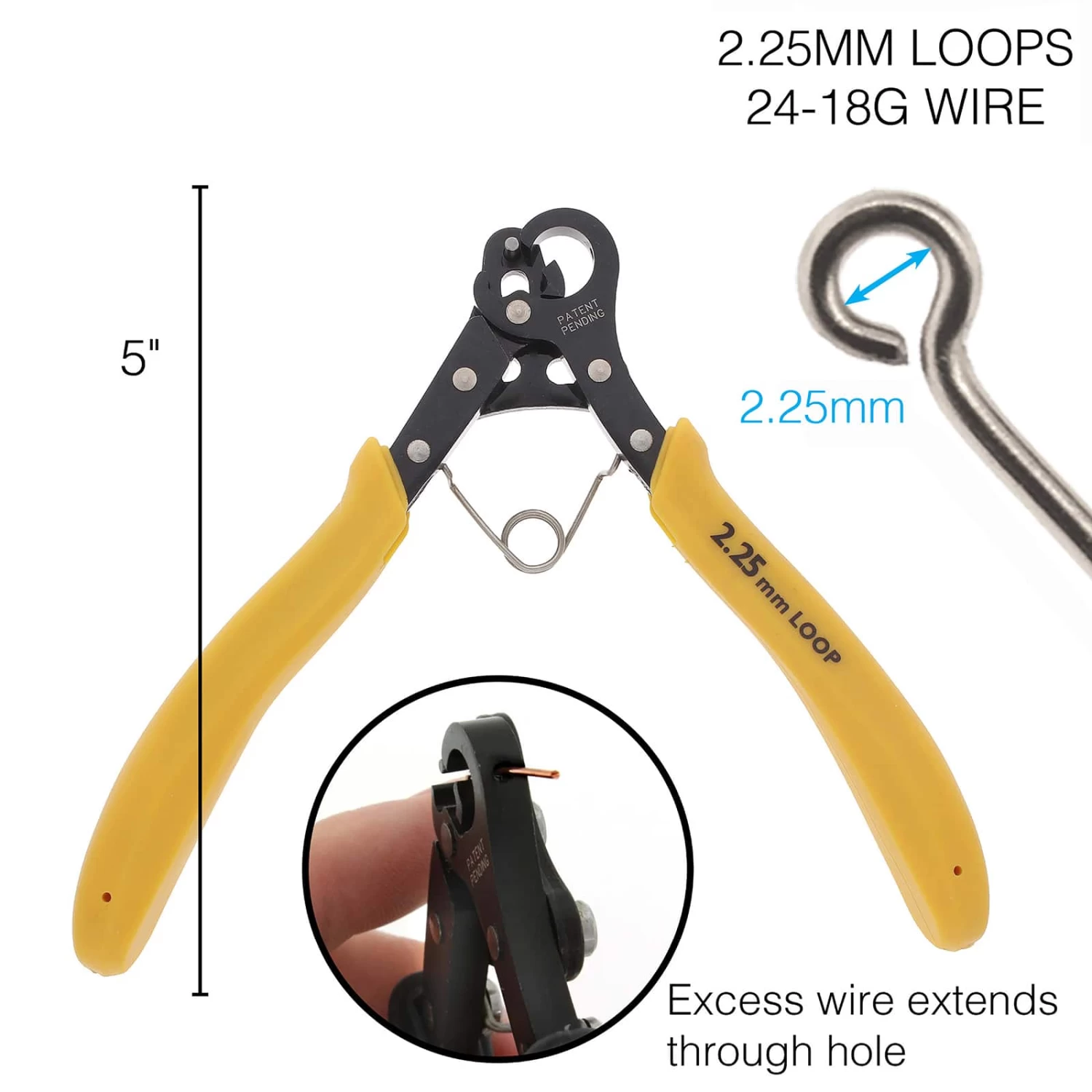 Create and trim loops in one easy step! Works with dead soft or half hard precious metal wire, craft wire, and copper or brass core wire. Makes a consistent size 3mm loop every time. Bends and trims Between 24 and 18 gauge wires.