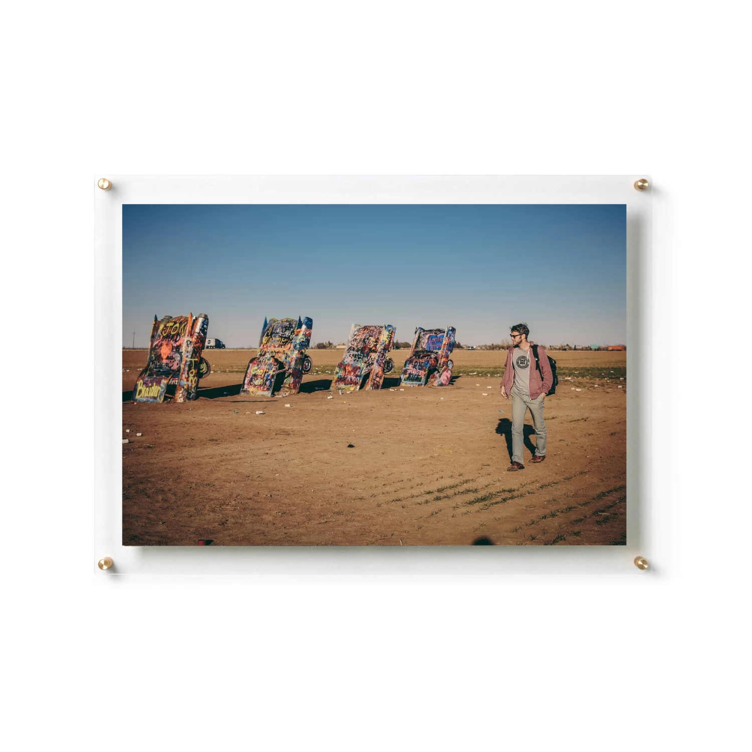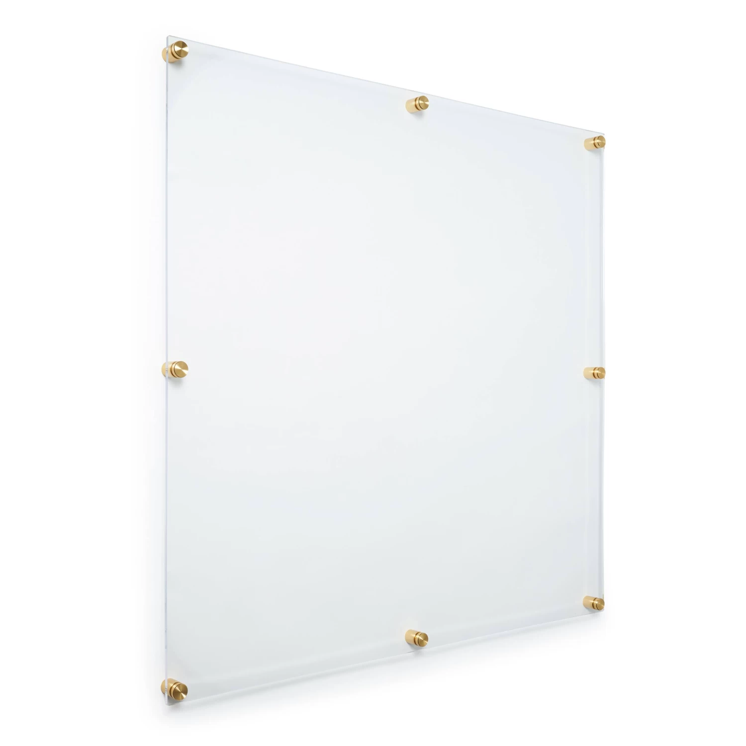 Get the floating effect while fully enclosing your artwork between two panels of lucite. Ideal for album covers, or any images. Wexel’s acrylic is mar-resistant and flame polished giving your frame the perfect finishing touch. When you want to change out your display, just unscrew the caps on the hardware and lift off the top panel of plexiglass.