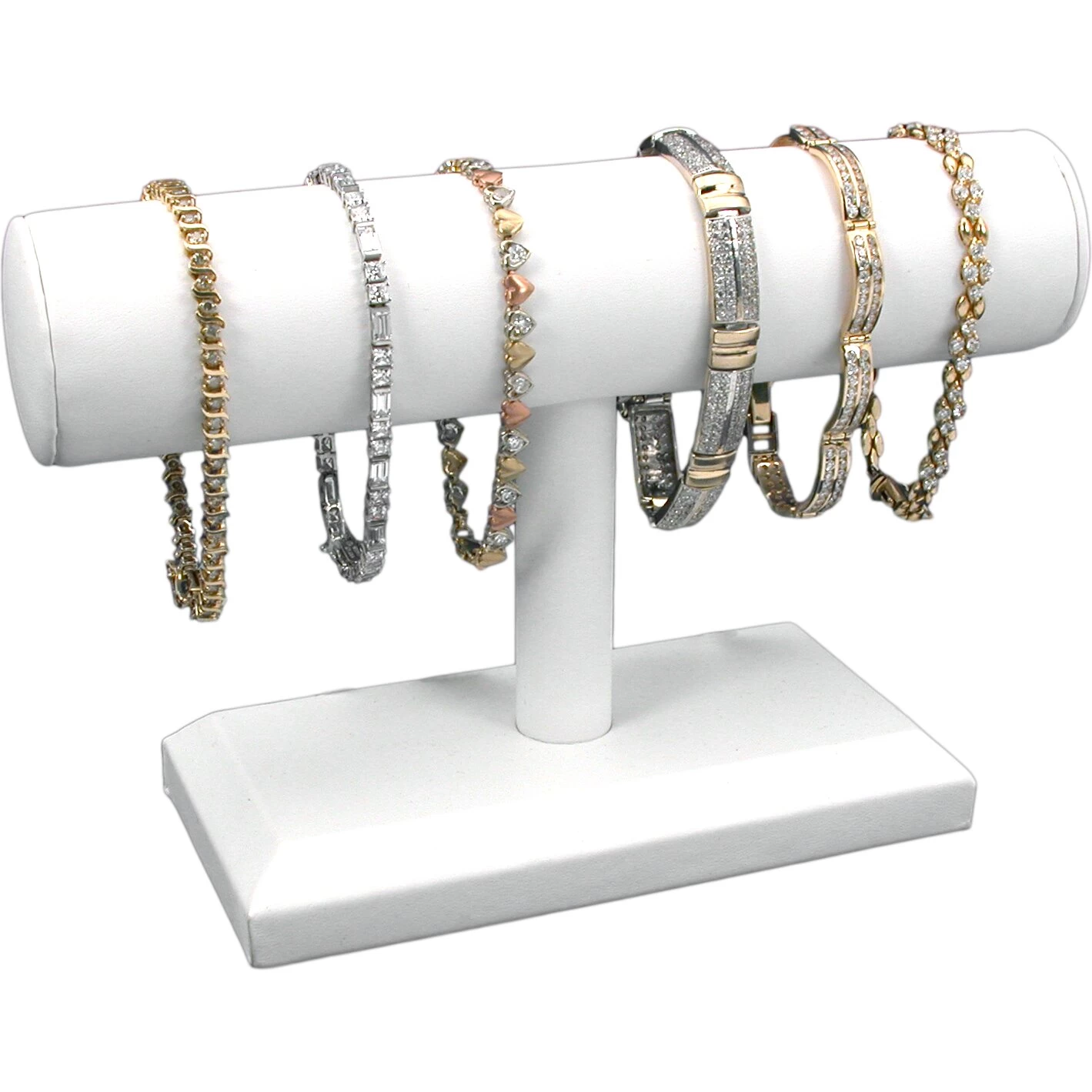 New White Faux Leather T-bar Bracelet & Chain Display For Jewelry Showcases & Countertops This is a new white faux leather t-bar bracelet or bangle display This beautiful contemporary display is great not only for displaying jewelry on your countertops but also for shows Perfect for displaying bangles & chains in any showcase or countertop The bar measures approximately 1 3/4″ in diameter It measures approximately 7 1/2″ x 4 7/8″ (190 x 123 mm)